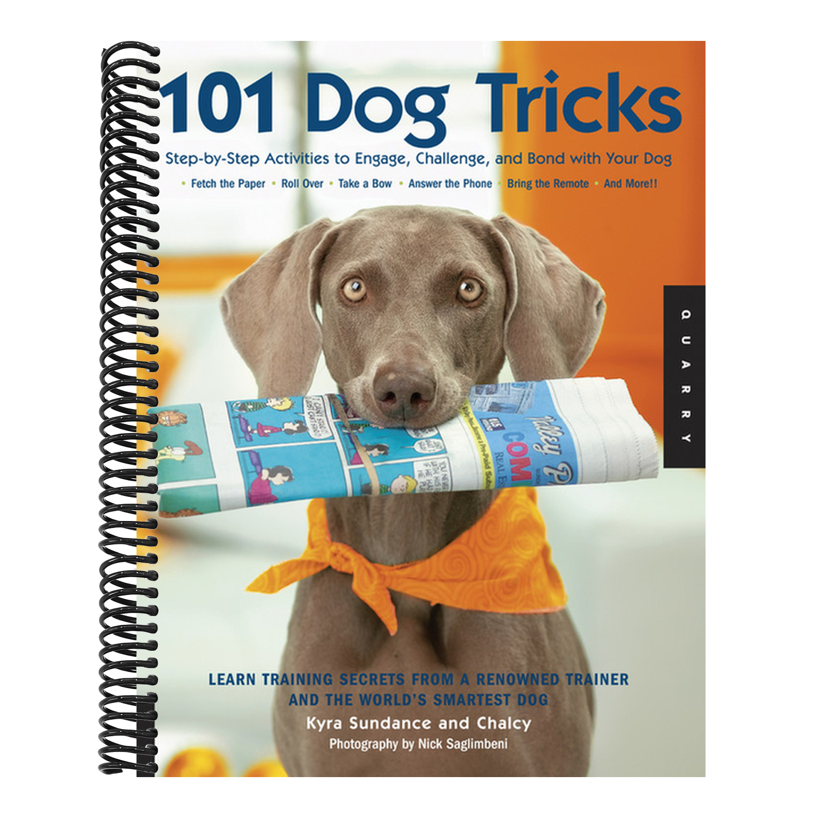 Marc Notes: Kyra Sundance is a world-renowned dog trainer, lecturer, and internationally best-selling author of 101 Dog Tricks: Step by Step Activities to Engage, Challenge, and Bond with Your Dog. With over a million copies in print, Kyra's award-winning books, kits, and videos have inspired dog owners worldwide to develop fun and rewarding relationships with their dogs. Her other books include Dog Training 101, The Joy of Dog Training, The Dog Tricks and Training Workbook, Kyra's Canine Conditioning, 51 Puppy Tricks, 10-Minute Dog Training Games, The Pocket Guide to Dog Tricks, and 101 Dog Tricks, Kids Edition. Honed through decades of professional experience, Kyra's easy step-by-step training methods are the most effective and humane way to train. Her positive methods foster confident, happy dogs who are motivated to do the right thing, rather than fearful of making a mistake. As professional performers, Kyra and her Weimaraners starred in shows for the king of Morocco, Disney's Hollywood stage shows, circuses, NBA halftime shows, on The Tonight Show, The Ellen DeGeneres Show, Animal Planet, in movies, and in their own television series. Kyra is a professional set trainer for movie dogs, and is nationally ranked in competitive dog sports. She presents workshops around the world on dog tricks and canine conditioning. Kyra is CEO of "Do More With Your Dog!" trick dog titling organization; the "National Trick Dog championships"; and Chair of the "Trick Dog Expo." Kyra lives in Lancaster, California. Kyra Sundance is a world-acclaimed stunt dog show performer, dog trainer, and internationally best-selling author. Her dog team performs live acrobatic shows on premier stages internationally; at circuses, professional sports halftime shows, and on movies and television shows such as The Tonight Show, Ellen, Entertainment Tonight, Worldwide Fido Awards, Animal Planet, Showdog Moms & Dads, and Beverly Hills Chihuahua 2. Kyra and her dogs starred in DisneyÆs Underdog stage show and in a command performance at the palace in Marrakech for the king of Morocco. Kyra has written numerous popular dog-training books including the international best-selling 101 Dog Tricks, and hosts a line of award-winning dog-training DVDs. She also set-trains dog actors for movies and TV and lectures on positive dog-training methods.Kyra is nationally ranked in competitive dog sports, having trained, competed, and titled in a great number of dog sports. Her methods foster confident, happy dogs who are motivated to do the right thing rather than ones fearful of making a mistake. She shows us how to develop joyful relationships with dogs who balance enthusiasm with self-control.Kyra and her Weimaraners Chalcy and Jadie live with KyraÆs husband on a ranch in CaliforniaÆs Mojave desert. www.kyra.comPublisher Marketing: 101 Dog Tricks is an international bestseller in 18 languages with over a half-million copies sold worldwide! This beautifully designed book features step-by-step instructions with easy-to-follow color photos of each step. Each trick is rated with a difficulty rating and prerequisites to get you started quickly. Tips and troubleshooting boxes cover common problems, while Build on it! ideas suggest more complicated tricks that build on each new skill. Tricks range from simple ones like Sit, Shake Hands, Fetch, and Roll Over, to extraordinary ones like Tidy Up Your Toys into the Toybox and Get a Soda from the Fridge. Organized by theme, it's easy to find the next trick to work on with your dog. Just a few of the themes to choose from: