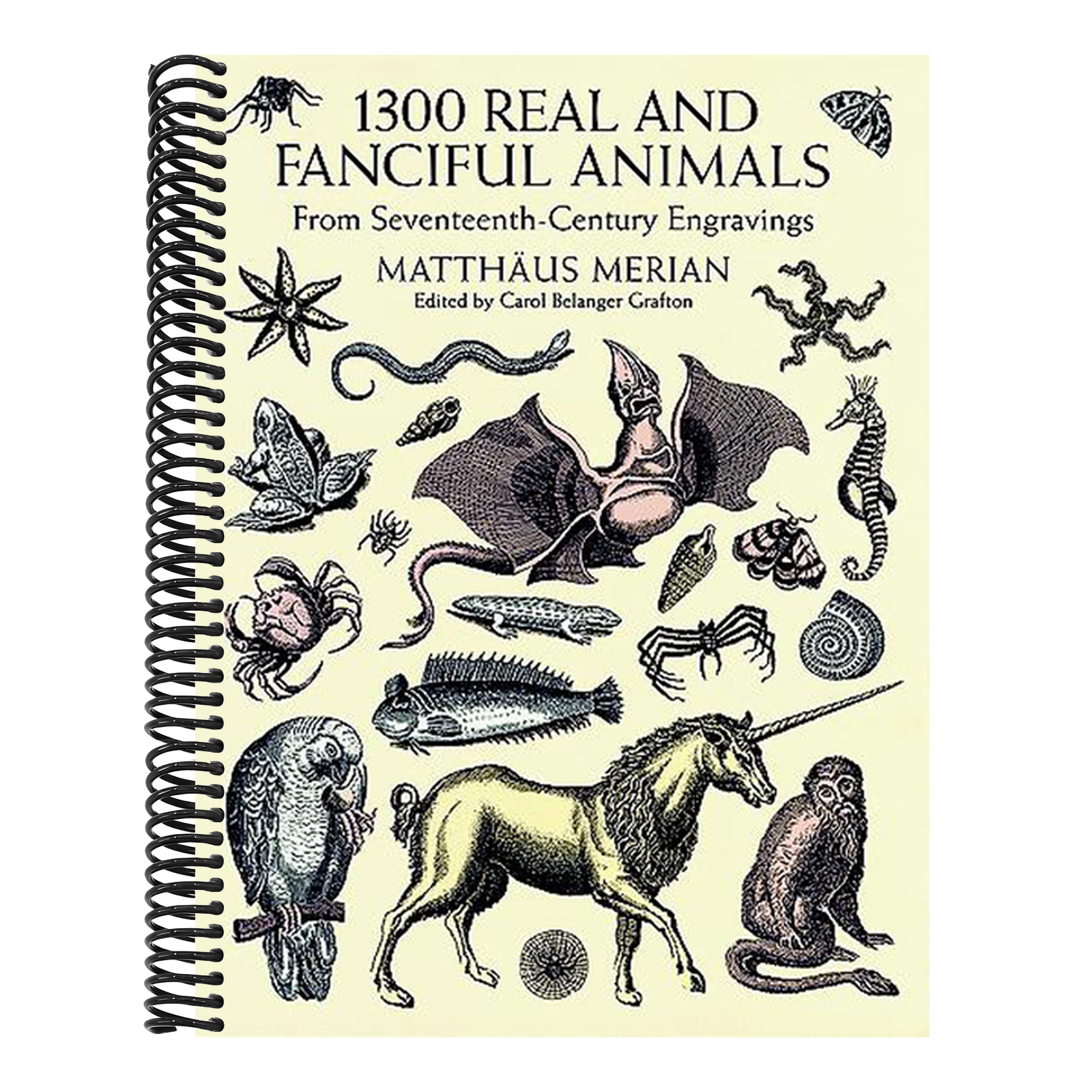 Carefully arranged into six major divisions (quadrupeds, snakes, mollusks and crustaceans, fish, birds, and insects), approximately 1,300 copyright-free images include realistic and fanciful portrayals of a varied array of real animals, in addition to such imaginary creatures as unicorns, dragons, basilisks, harpies, griffins, and other mythical beasts. Identifying captions in Latin accompany many of the illustrations.
