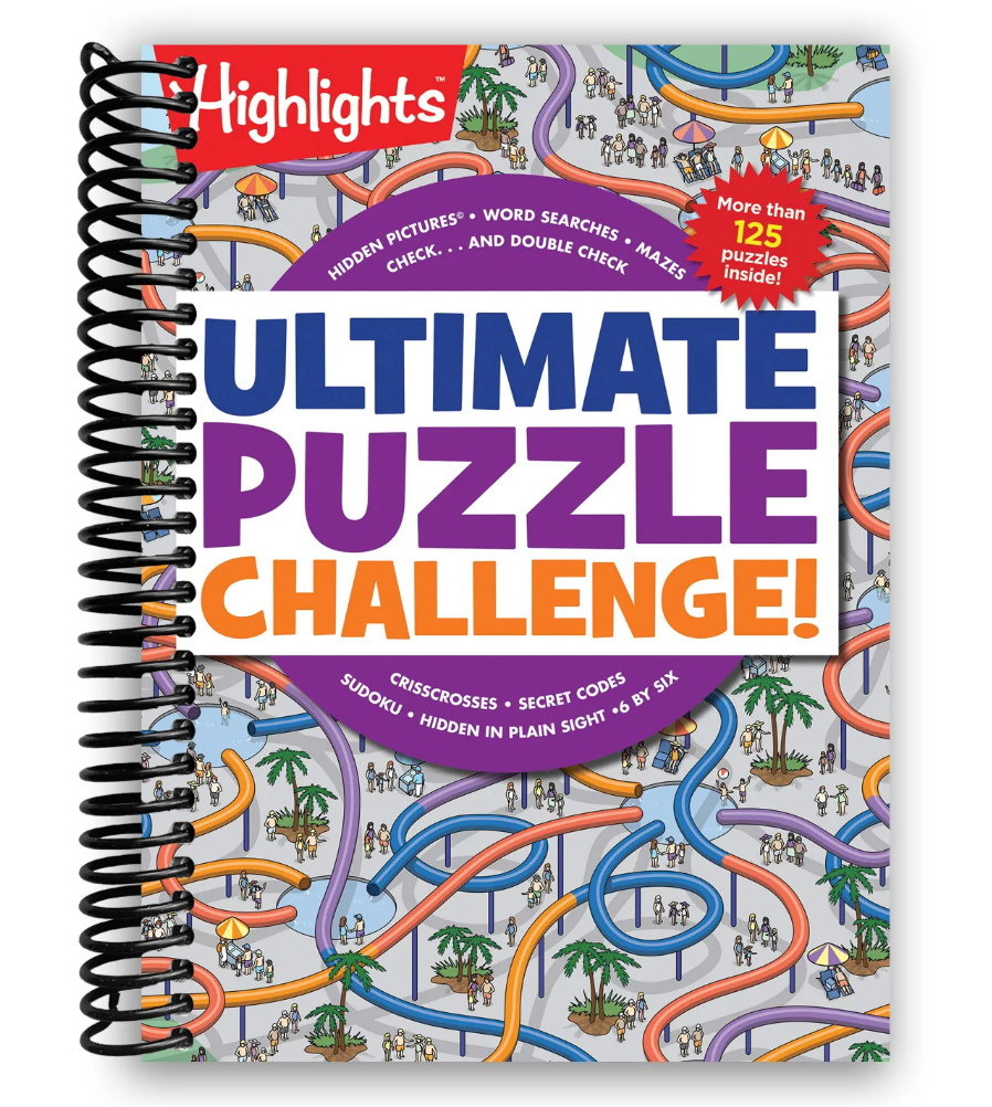 Ultimate Puzzle Challenge! is the perfect way for young puzzlers to engage their minds while having fun. Whether at home, on a road trip, or hanging out with friends, this spiral-bound puzzle book offers hours of screen-free entertainment and cognitive benefits. With challenges crafted by the experts at Highlights, it’s sure to satisfy even the most experienced puzzle enthusiasts!