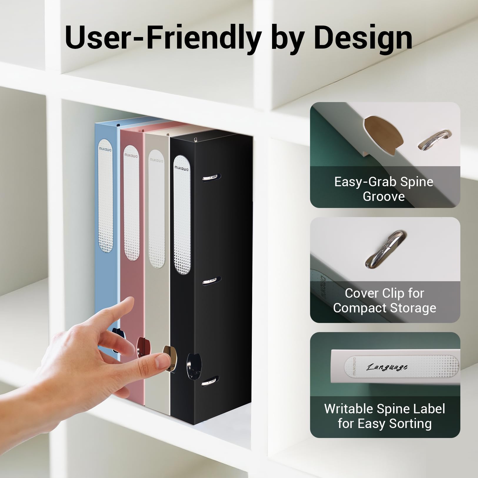 • Thoughtful Design Binder: lightweight PP cover with snap closure; writable spine label for sorting; easy-grab spine groove for fast shelf pull