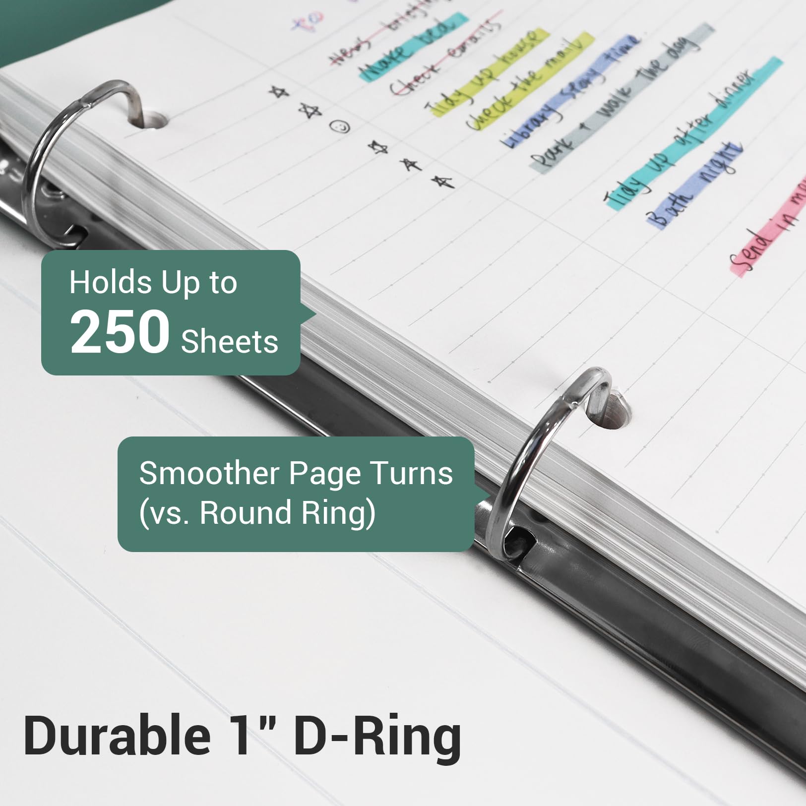 • Durable 1" D-Ring Binder: Smooth page turning, no snags; rounded corners; water-resistant, acid-free PP hard covers for daily school, office, and home use
