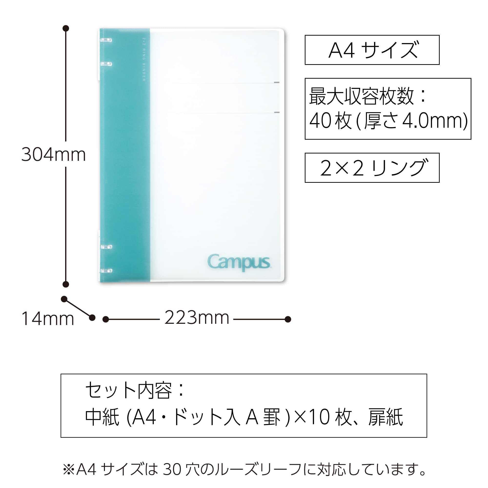 Kokuyo Campus Refillable Notebook, A4 2x2 Slim Ring Binder Notebook with Customizable Title Page, 40 Sheets Capacity. Suitable for 30 Holes Loose Leaf Paper, Light Blue (RU-NP174LB)