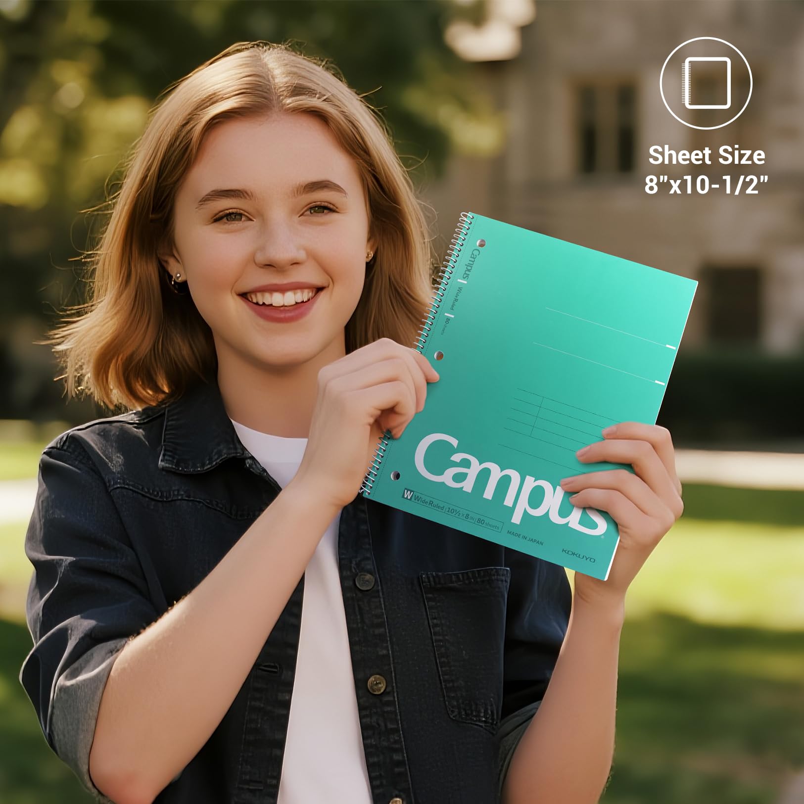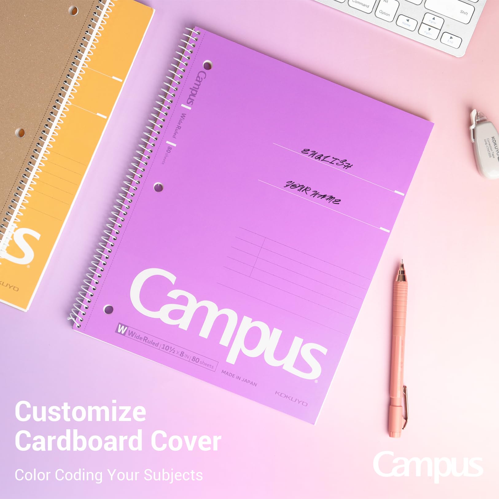 - Japanese Notebook: Kokuyo wide ruled notebook is built with a sturdy spiral binding that keeps the pages securely in place for long-term use. The size of every single subject notebook is 10.5” x 8” and come with 80 wide ruled paper sheets. Notebook pack of 3 colors (Purple, Orange, Turquoise)