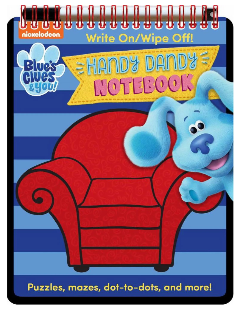 Blue's Clues & You! Handy Dandy Notebook is the ultimate activity book for fans of the hit Nickelodeon TV show. This spiral-bound write-and-wipe notebook is designed to look just like Josh's Handy Dandy Notebook, offering hours of interactive fun for kids ages 3-5. With write-and-wipe pages and a wipe-clean marker included, children can complete activities like mazes, spot the difference, drawing, and more—repeating the fun as often as they like.