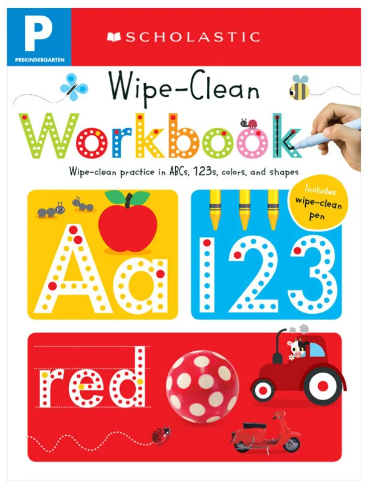 Scholastic Early Learners: Wipe-Clean Workbook (Ages 3–5) is a reusable, interactive learning tool designed to help preschoolers master essential early childhood skills through engaging, hands-on practice. This wipe-clean workbook features 56 colorful, spiral-bound pages and includes a wipe-clean pen, allowing kids to trace, write, and repeat exercises again and again—building confidence, fine motor skills, and school readiness.