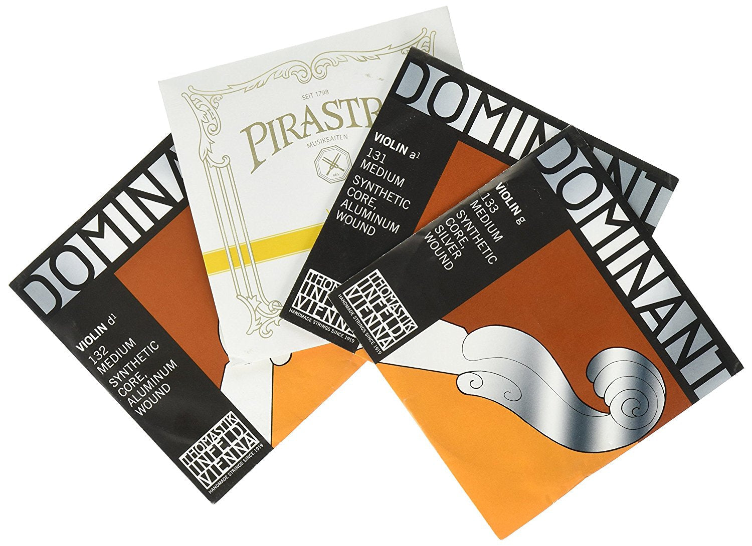 - Full Set includes All Ball-End Pirastro Gold Label Plain Steel E, Thomastik Dominant Aluminum Wound Perlon Core A, Thomastik Dominant Aluminum Wound Perlon Core D, Thomastik Dominant Silver Wound Perlon Core G